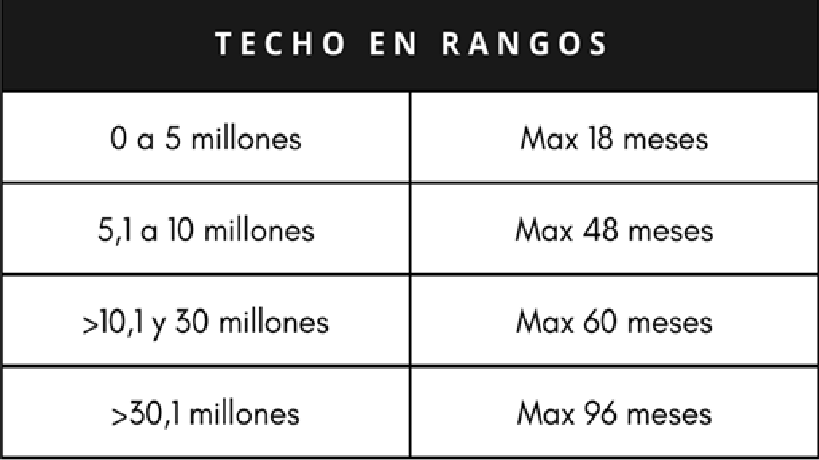 Hasta 8 SMMLV Aprox.4 millones y según capacidad de pago mensual o mensual y semestral